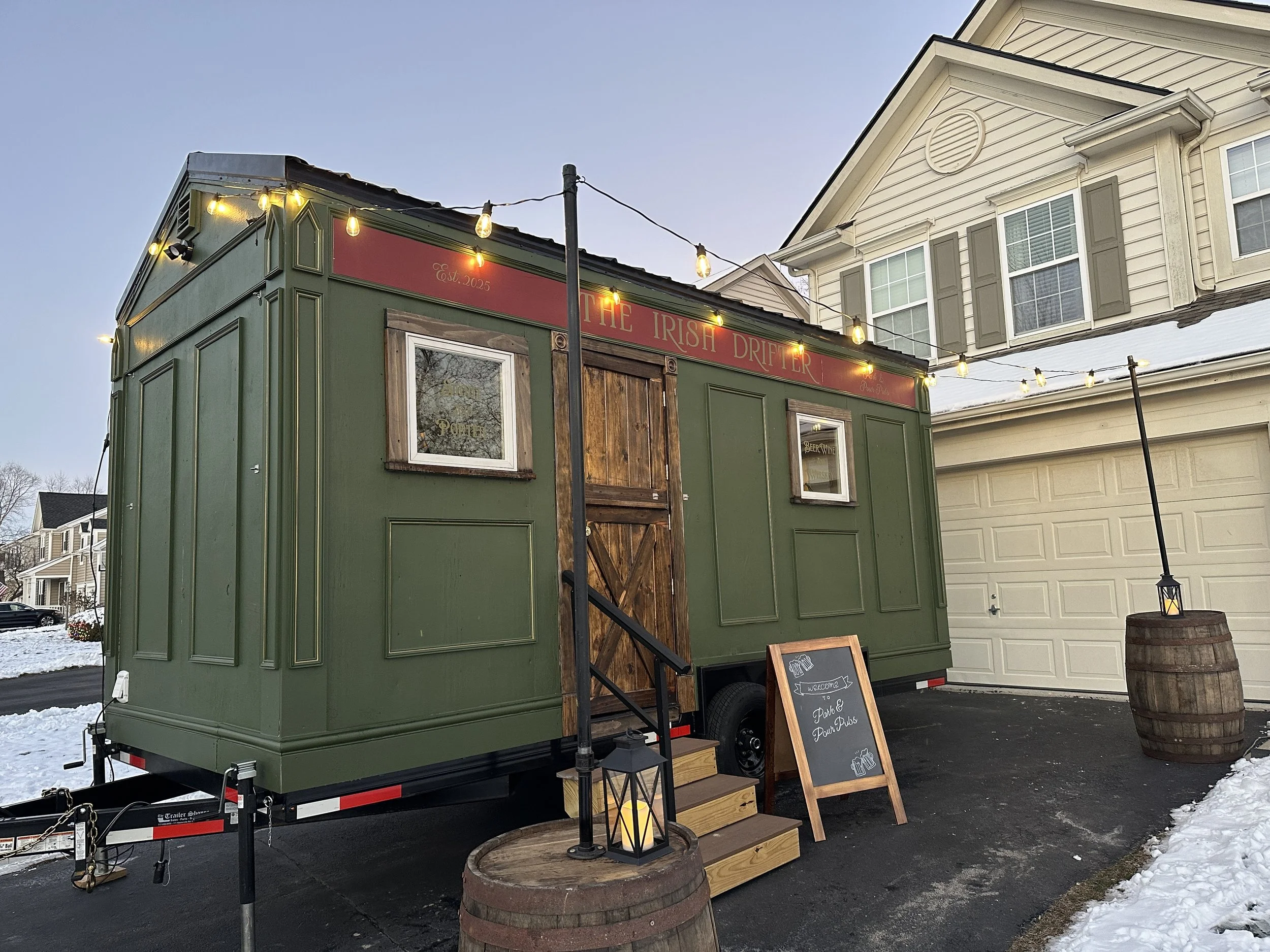 Add cozy pub-yard charm to your event. Warm string lights drape from the front of the pub and extend out to whiskey barrels, creating a subtle beer-garden glow that elevates evening parties and nighttime gatherings.